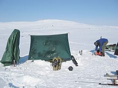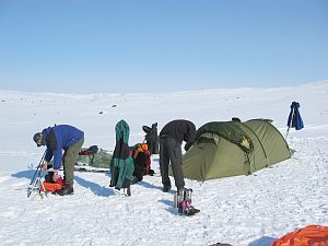 Zelte auf und begannen wieder mit unserem täglichen Schneeschmelzen.