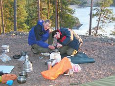 die Gelegenheit nutzen von dort Wasser zum Kochen zu holen. Am Fluss